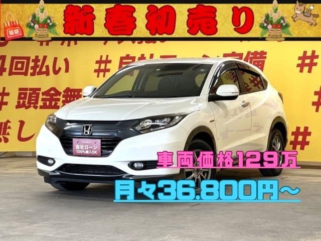 ✨上級グレードのヴェゼルが月々3万円台~ 前席シートヒーターやフロントガラス熱線スイッチ・ヒーターミラーなどオプション装備多数👍 ホンダギャザーズインターナビ🗾搭載🎶地デジフルセグTV📺&DVD📀!Bluetoothでスマホのミュージックが流せます😆 LEDヘッドライト&フォグランプで夜道を明るく照らします🔦 JC08モード燃費23.2km/リットル&アイドリングストップで更なる低燃費を実現🍃 いつでもスポーツ気分に!パドルシフト付き! バックカメラ付きで楽々・安心駐車👀 💡ご希望の方にはスタッドレスタイヤ新品4本プレゼント💡