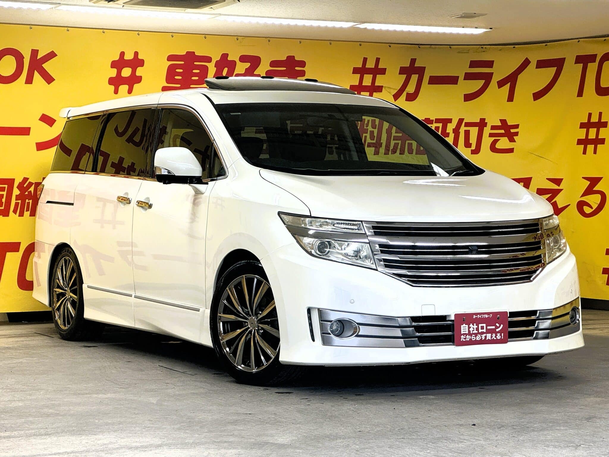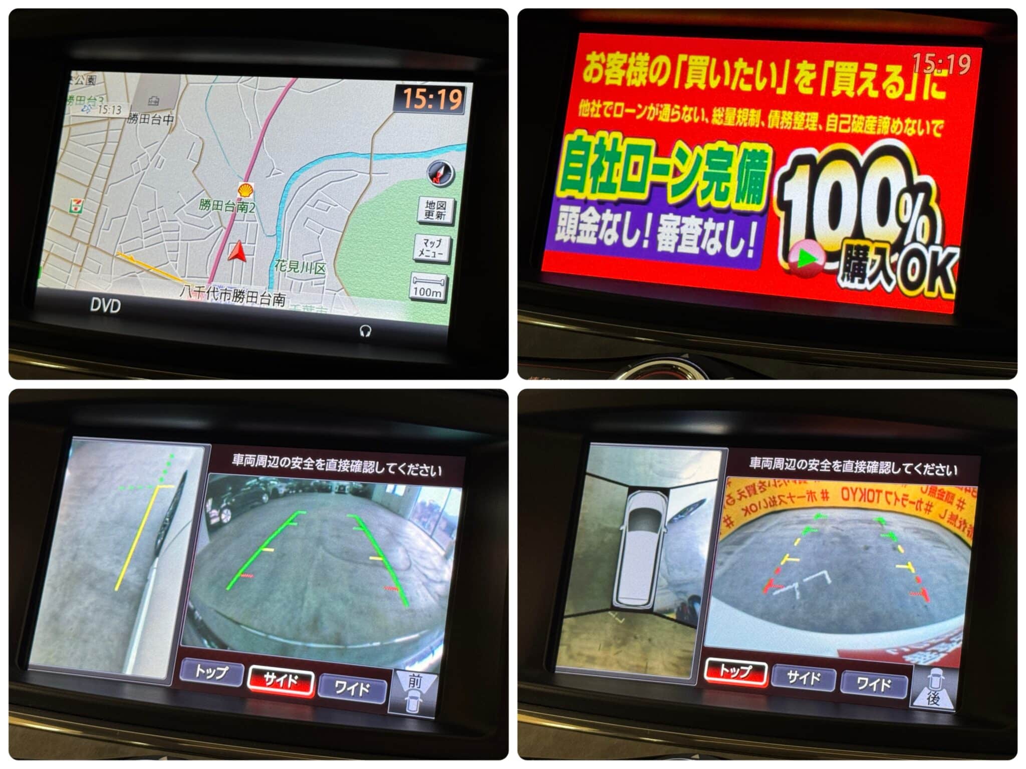 純正HDDナビ 地デジフルセグTV走行中可 CD DVD Bluetooth ビルトインETC バックカメラ サイドカメラ フロントカメラ アラウンドビューモニター ウィンカー付き電動格納ミラー 革巻きハンドル ステアリングスイッチ 両側パワースライドドア ツインサンルーフ ドライブレコーダー 純正フリップダウンモニター 助手席オットマンシート 2列目オットマンシート 後席サンシェード オートエアコン デュアルエアコン Wエアコン オートライト HIDヘッドライト フォグ BOSEサウンドシステム 社外19インチAW 車検2年付
