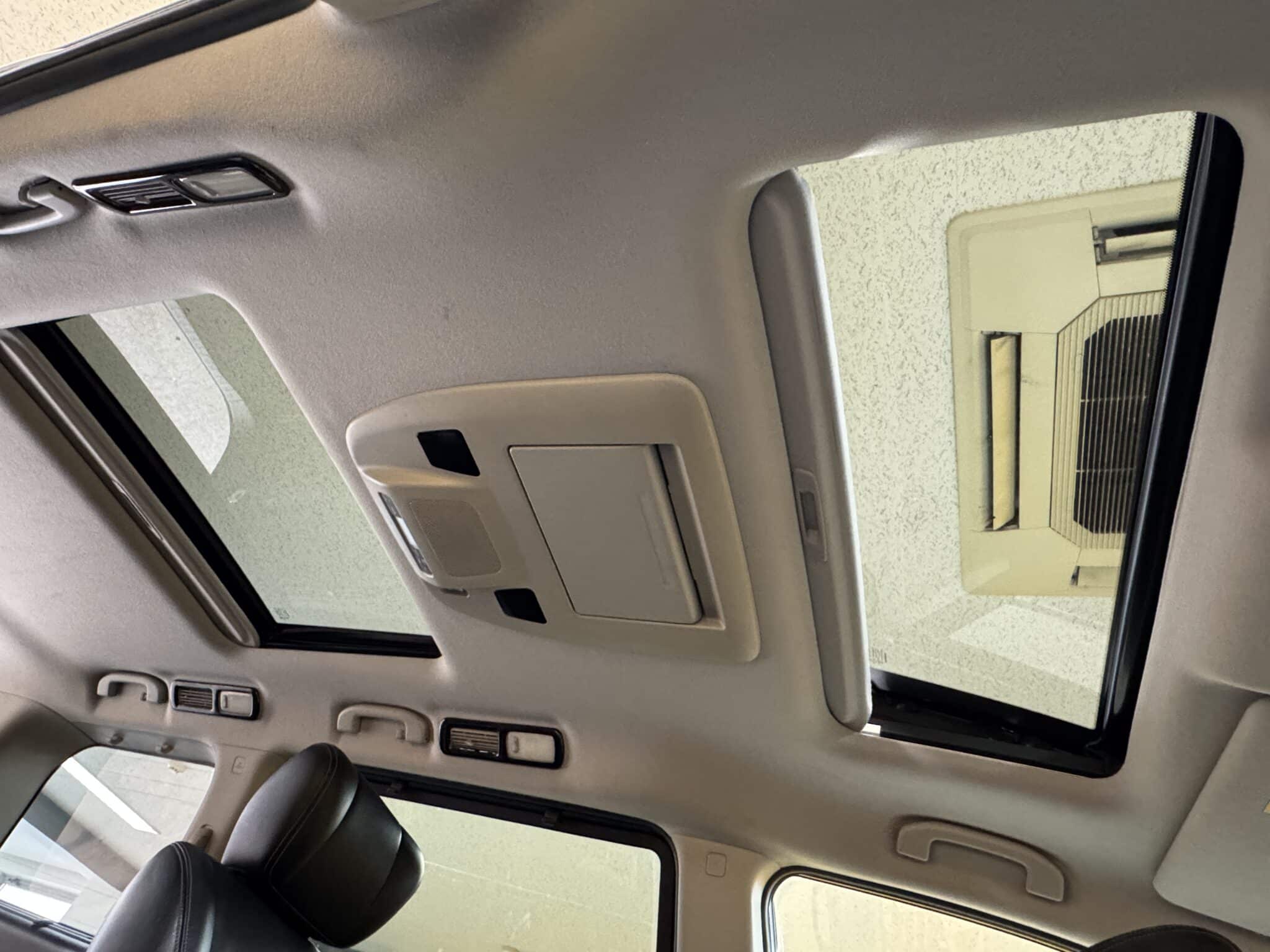 純正HDDナビ🗾DVD📀Bluetooth🎶📞フルセグTV内蔵型📺走行中映像視聴可能👀開放的なツインサンルーフ付き🌞7人乗り黒本革シート&2列目キャプテンシート・オットマン付き✨助手席オットマン付き💺/BOSEサウンドシステム&純正フリップダウンモニター搭載でエンタメ機能も抜群📣お子様も大喜び🤗リアサイドシェード付きでプライバシー&UV対策OK🌞両側パワースライドドア楽々開閉🚪
