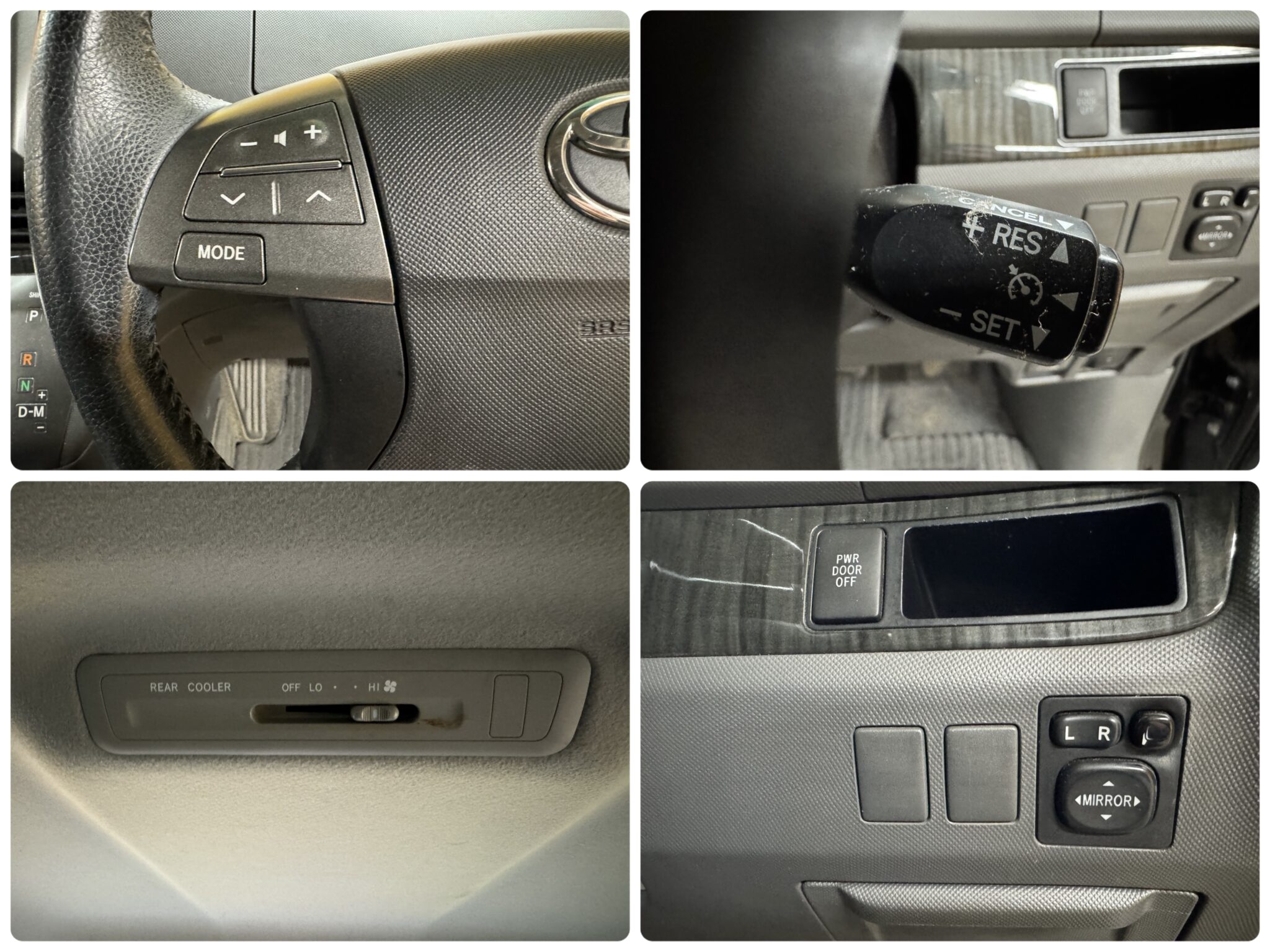 純正HDDナビ 地デジワンセグTV CD DVD Bluetooth バックカメラ ビルトインETC 革巻きハンドル ステアリングスイッチ ウィンカー付き電動格納ミラー 両側パワースライドドア クルーズコントロール オートエアコン デュアルエアコン リアクーラー 3列目床下格納シート オートライト HIDヘッドライト フォグ プッシュスタート スマートキー キーレス 純正17インチAW