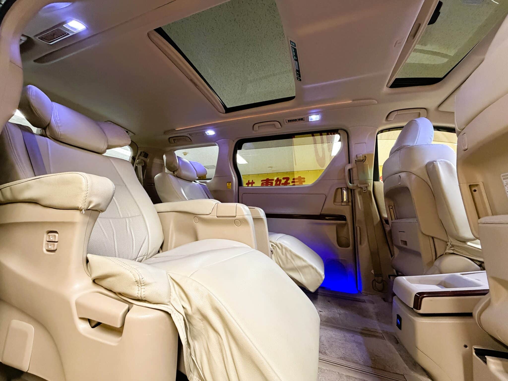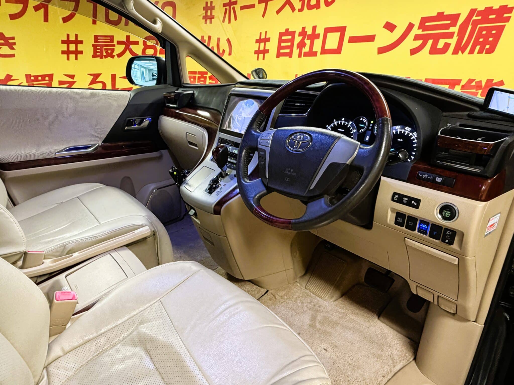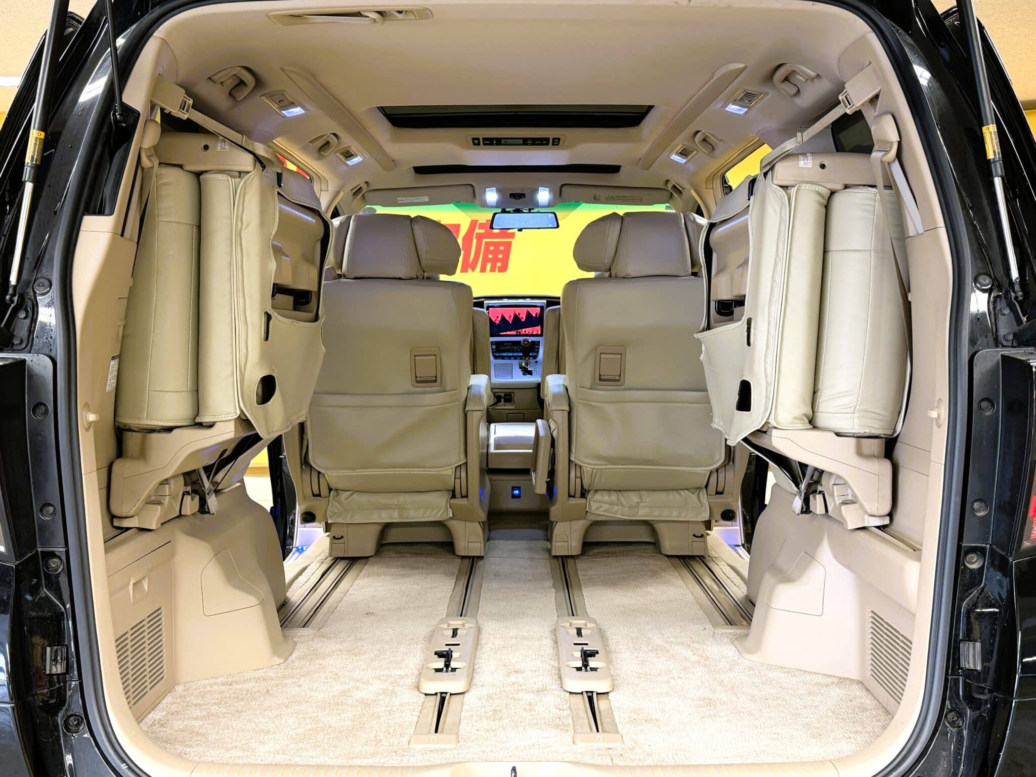 アンドロイドナビ Bluetooth バックカメラ ビルトインETC ウィンカー付き電動格納ミラー ドアバイザー ウッドコンビハンドル ステアリングスイッチ クルーズコントロール 両側パワースライドドア パワーバックドア ツインムーンルーフ 助手席・2列目オットマン付きエグゼクティブシート パワーシート 運転席メモリーシート クリアランスソナー ミラー一体型ドライブレコーダー オートエアコン デュアルエアコン Wエアコン オートライト HIDヘッドライト フォグランプ オートライト 3列シート ウォークスルー ベージュ系レザー調シートカバー USBポート クリスタルアイフルLEDテールレンズ イルミスカッフプレート 後期純正18インチAW(ブラックペイント)