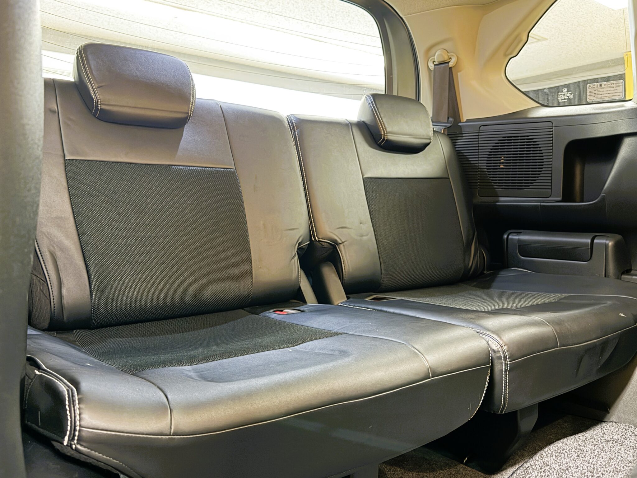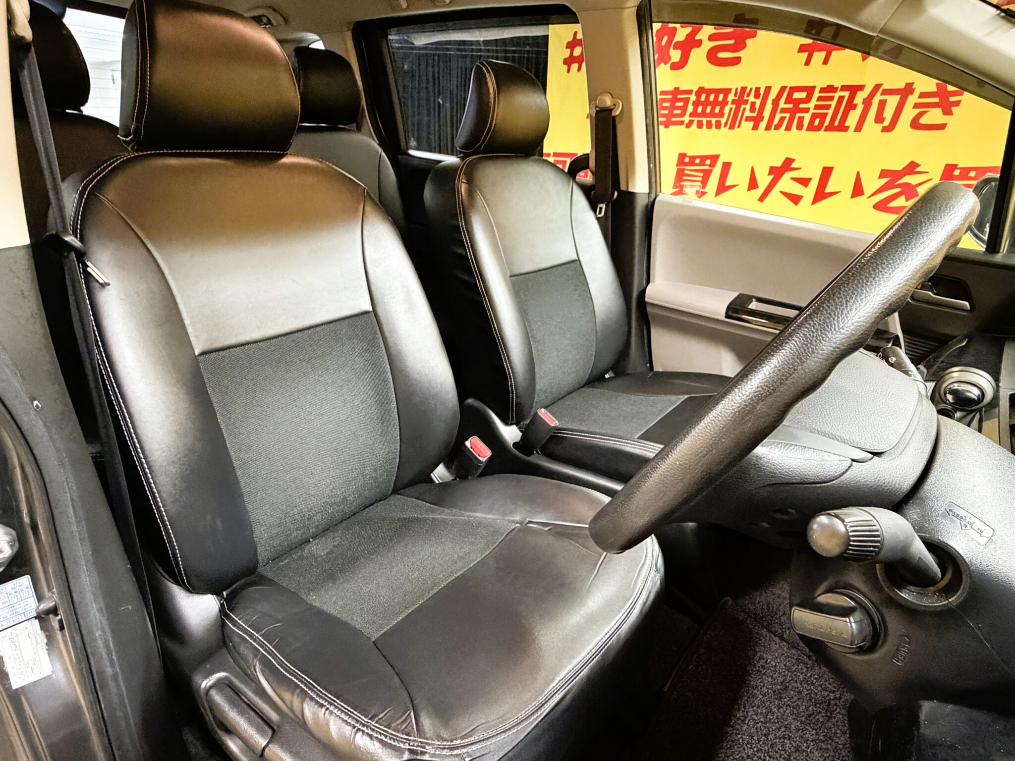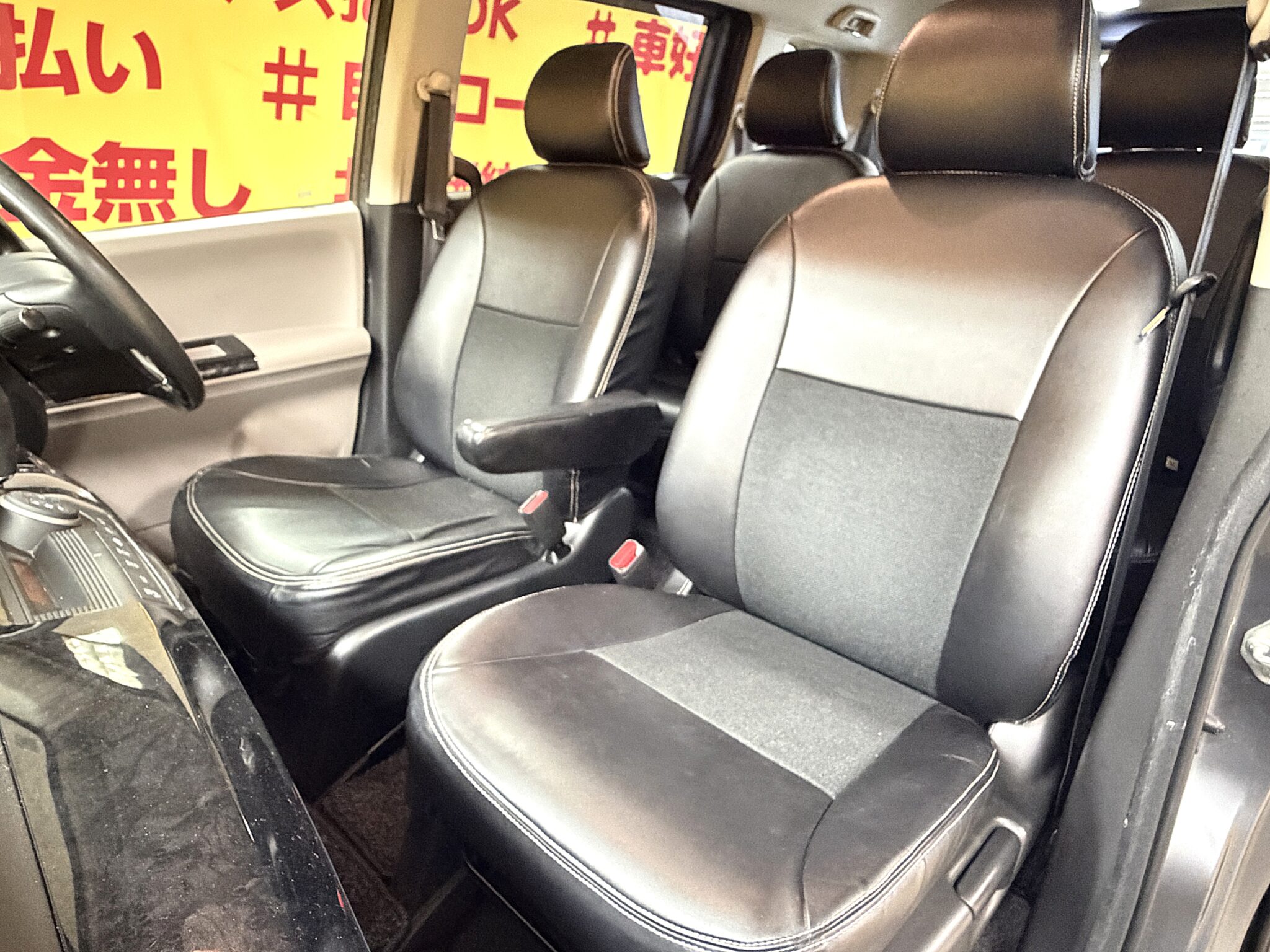 ケンウッドメモリーナビ CD SD Bluetooth ワンセグ バックカメラ ETC ウインカー付ドアミラー ドアバイザー オートエアコン ステアリングスイッチ スマートキー HIDヘッドライト オートライト 両側スライド左側パワースライドドア 7人乗りキャプテンシート レザー調シートカバー 社外15インチAW 納車時新品タイヤ装着